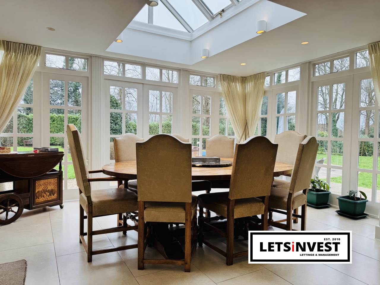 expansive living space, approx. 6,400 sq.ft, three reception rooms, seven bedrooms, five en-suite bathrooms, heated Pool and beautifully manicured grounds surrounding. Council Tax Band H